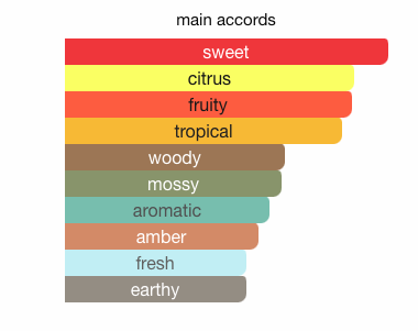 The scent opens with a luminous burst of lemon, mango, rhubarb, and ginger, creating an uplifting and exotic introduction. The heart reveals a delectable harmony of pink pepper, jasmine, praline, and violet, weaving together floral warmth and sweet gourmand charm. Finally, the base unfolds with an elegant trail of moss, tonka bean, ambergris, and cedarwood, grounding the fragrance in sophistication and allure.